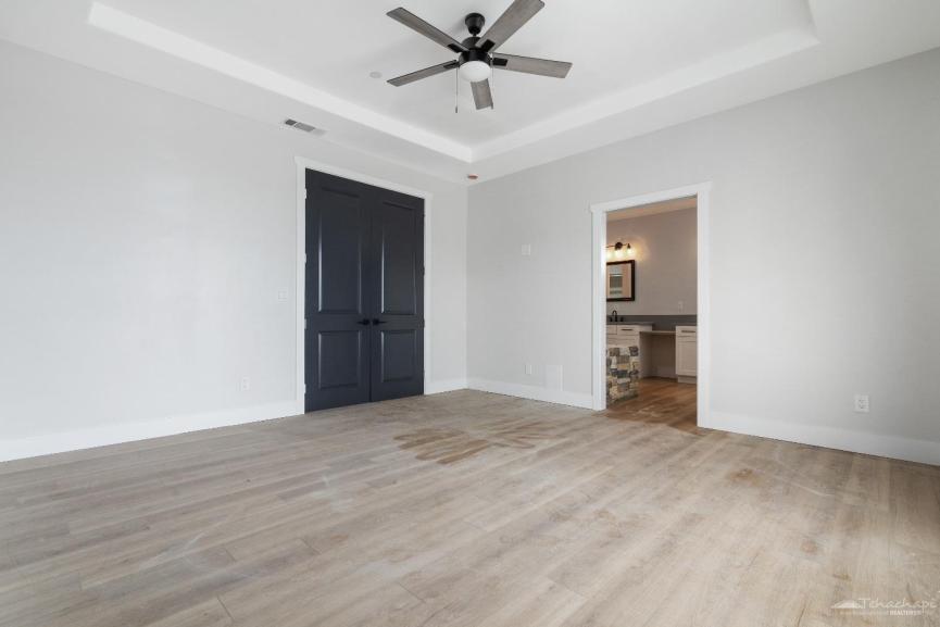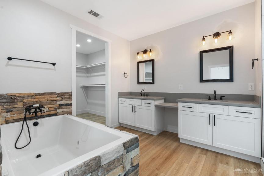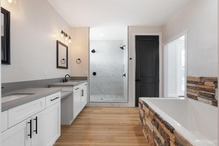 The primary suite is a true retreat, featuring a spa-inspired bathroom with a massive walk-in shower with dual shower heads, a generously sized soaking tub and stunning tile work throughout. And just wait until you see the interior doors -- they're the perfect touch of class and sophistication.