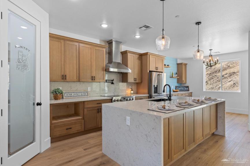 - THOR appliances: 36-inch stove, fridge, microwave, and wine fridge