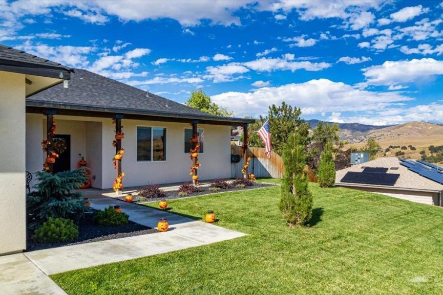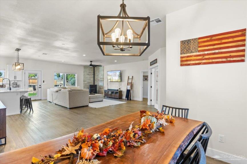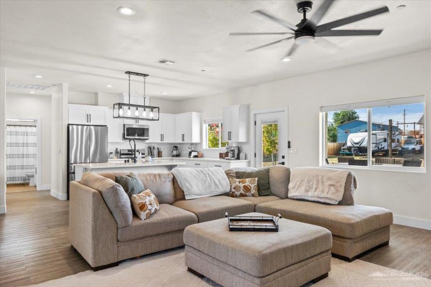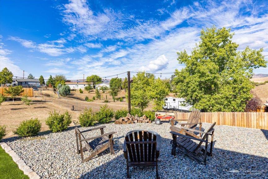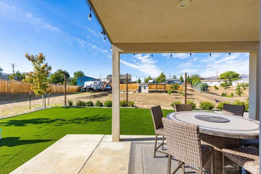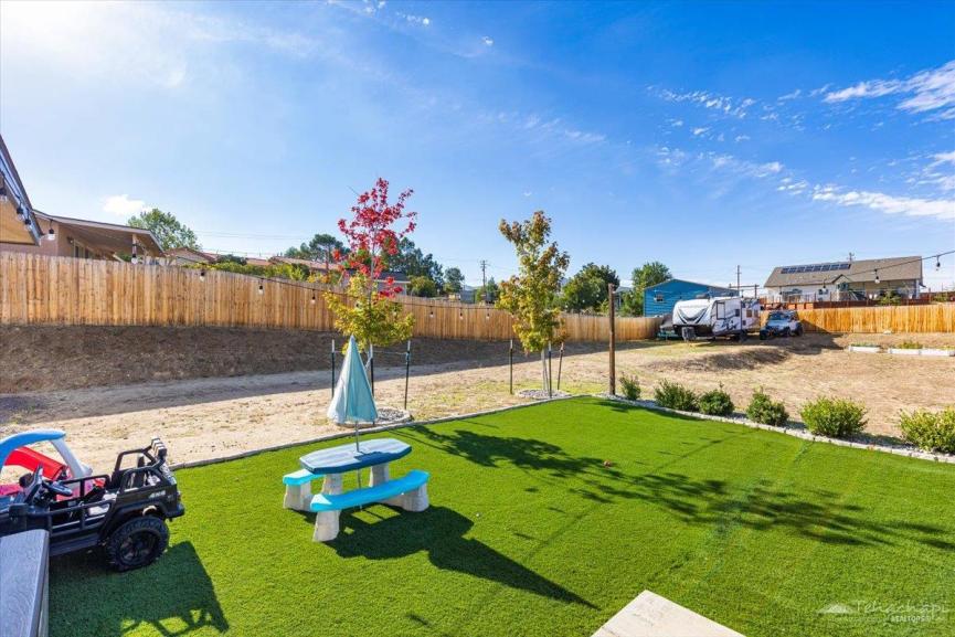 Step into the backyard and be impressed, it's an entertainer’s paradise! Featuring luxury accommodations for your chickens, fruit trees, artificial turf, a spacious concrete patio for gatherings, and charming string lighting, this backyard was made for enjoying life outdoors.