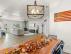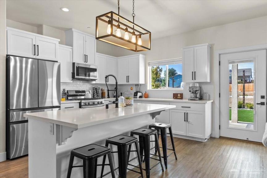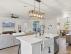 - Oversized island with quartz countertops
